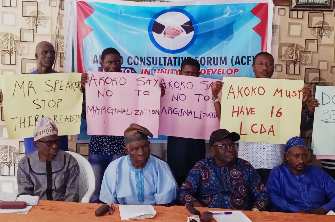Prominent Sons and Daughters of Akoko area of Ondo State under the umbrella of the Akoko Consultative Forum (ACF) today staged a peaceful protest to draw the attention of the world to the marginalisation of the area by the Ondo State Government in the creation of 33 Local Council Development Areas (LCDAs).