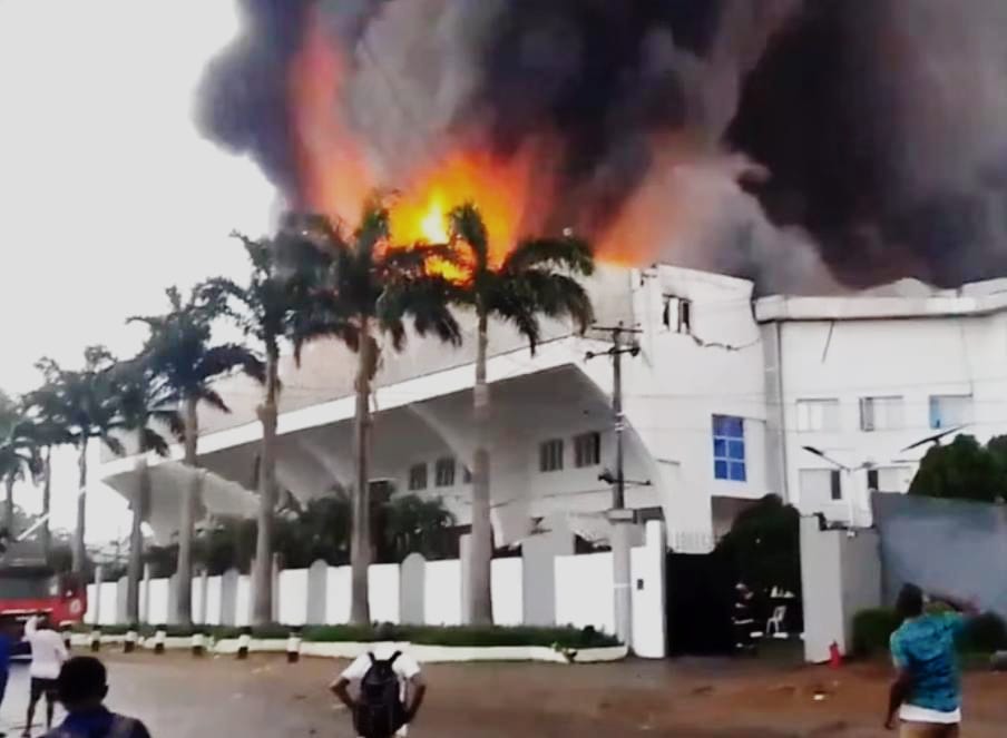 Scene of the fire outbreak at Christ Embassy headquarters in Lagos pic.twitter.com/XyWMmIl9QF