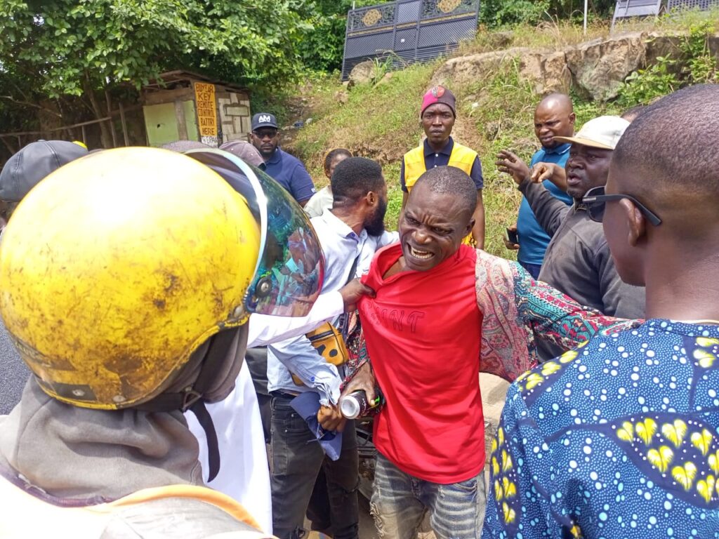 The suspect who is an Okada rider however escaped being lynched by the people as the Policemen who were passing by in their patrol vehicle came to his rescue and whisked him away.