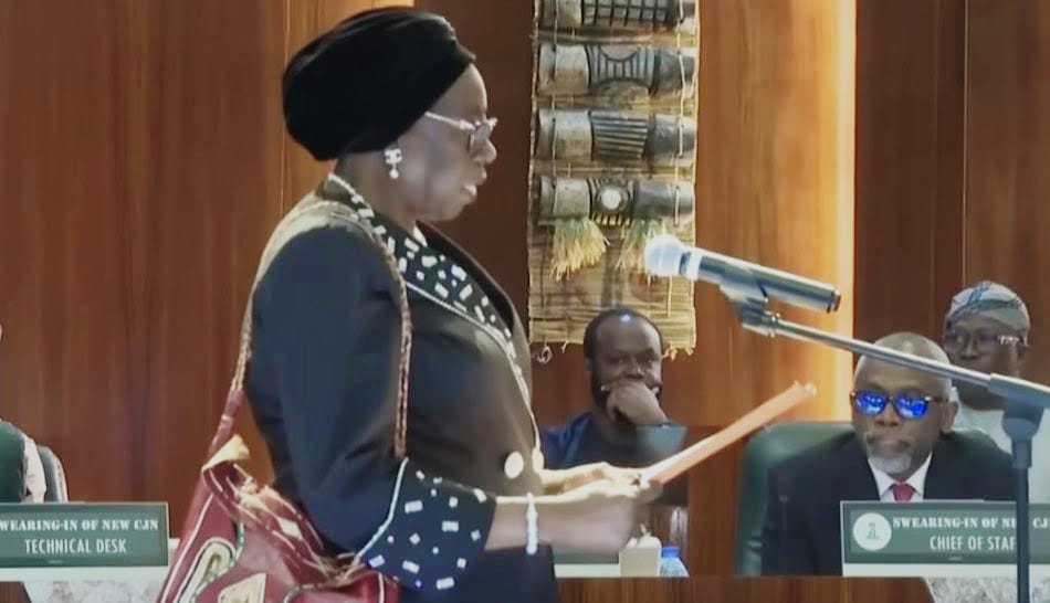 Kekere-Ekun took the oath of office and signed the oath register at 11.40 am at the Council Chamber of the State House, Abuja on Friday as the 23rd CJN, pending her confirmation by the Senate.