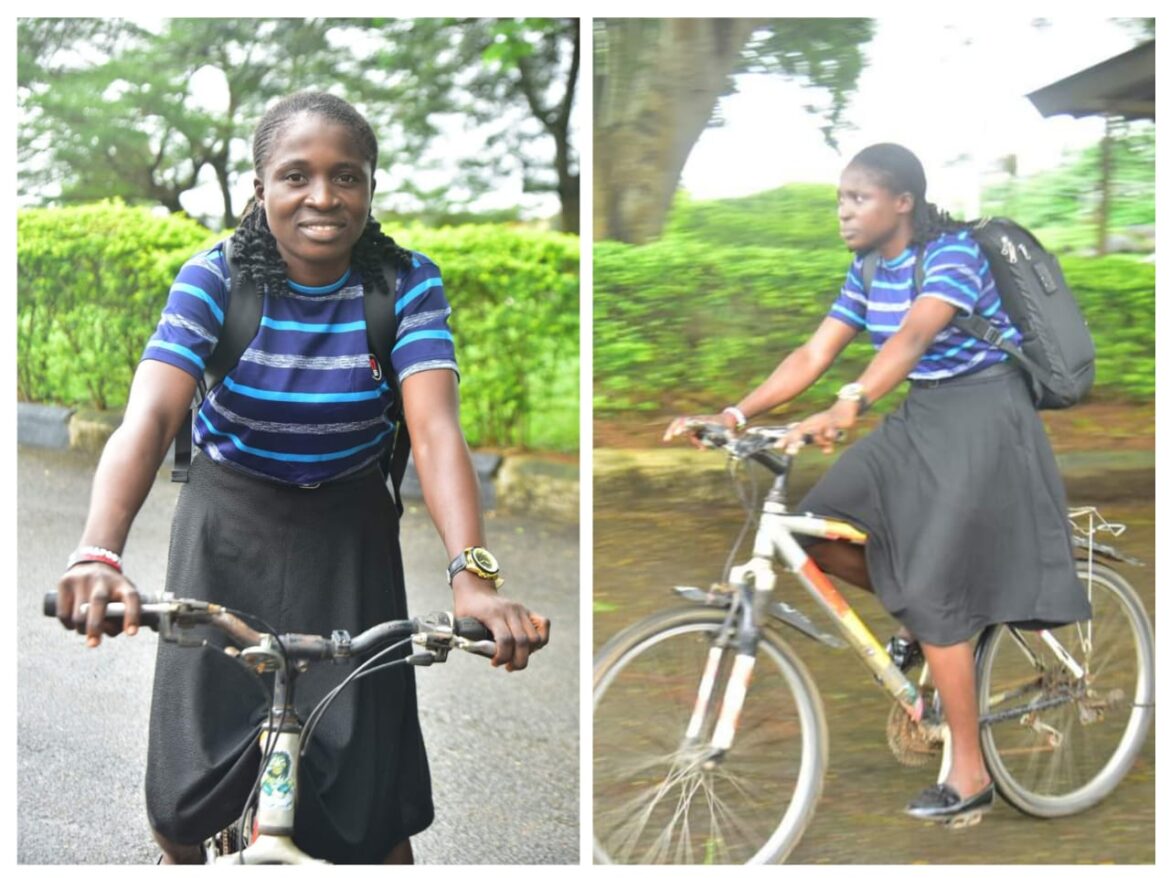 In the bustling campus of the Federal University of Technology, Akure (FUTA), a familiar sight catches the eyes of many—a young woman gliding through the throngs of students on a bicycle.