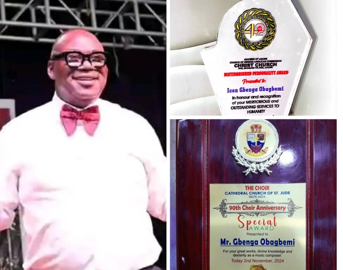 Icon Olugbenga Obagbemi received two impactful awards of recognition from the Cathedral Church of St. Jude, Lagos and Christ Church, Diocese of Akure, Anglican Communion in Ondo State.