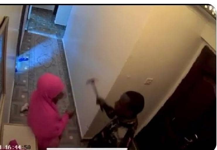 A viral robbery video shows the robber assaulting another woman while the house help looked on.