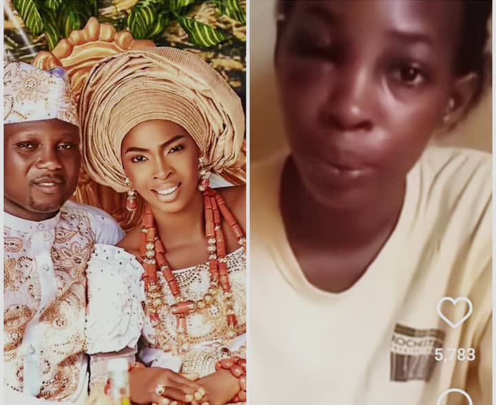 Kagbaranee Imeah took to Facebook to post photos and videos of herself with injuries on her face, alleging that her husband, Livinus, violently assaulted her for wearing a singlet to drop off their children at school.