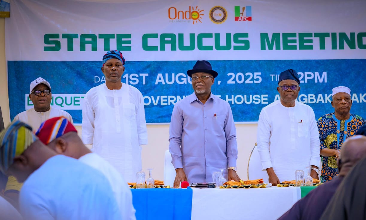 The Governor of Ondo State, Lucky Aiyedatiwa, on Friday, hosted an exclusive session of the All Progressives Congress (APC) Leaders Caucus in Akure, drawing the party’s heavyweights into early political mobilization ahead of the 2027 general elections.