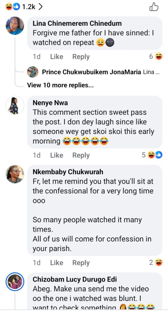 “It is regrettable to see husbands, fathers, wives, and mothers describing a lady’s breasts. Kindly meet your priest and confess to the Lord.”