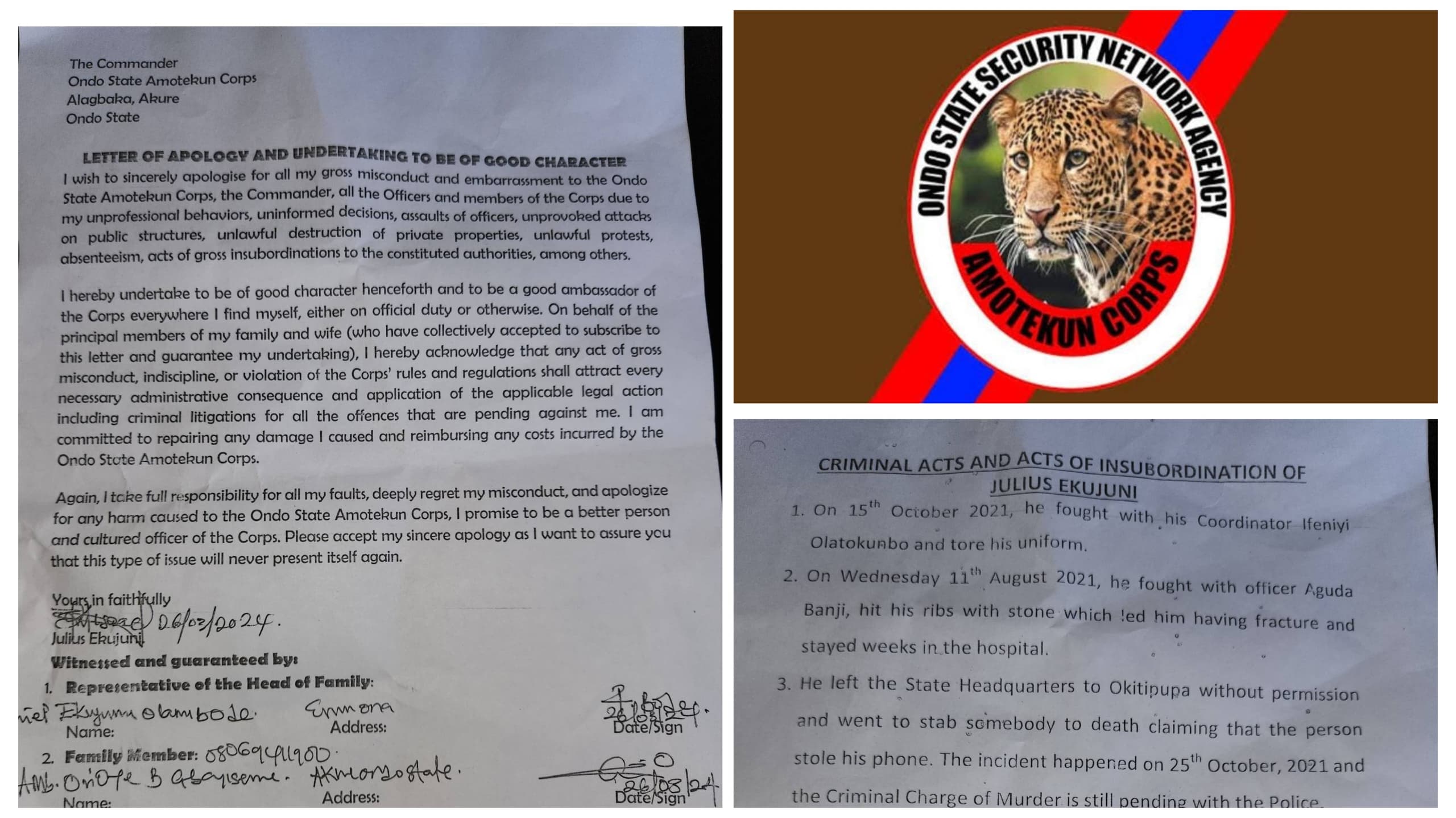 The Ondo North Progressive Like Minds for Good Governance has declared its support for the leadership of the Ondo State Security Network Agency, codenamed Amotekun Corps, while faulting a dismissed officer, Julius Ekujuni, for allegedly making false and defamatory remarks against the Corps Commander.